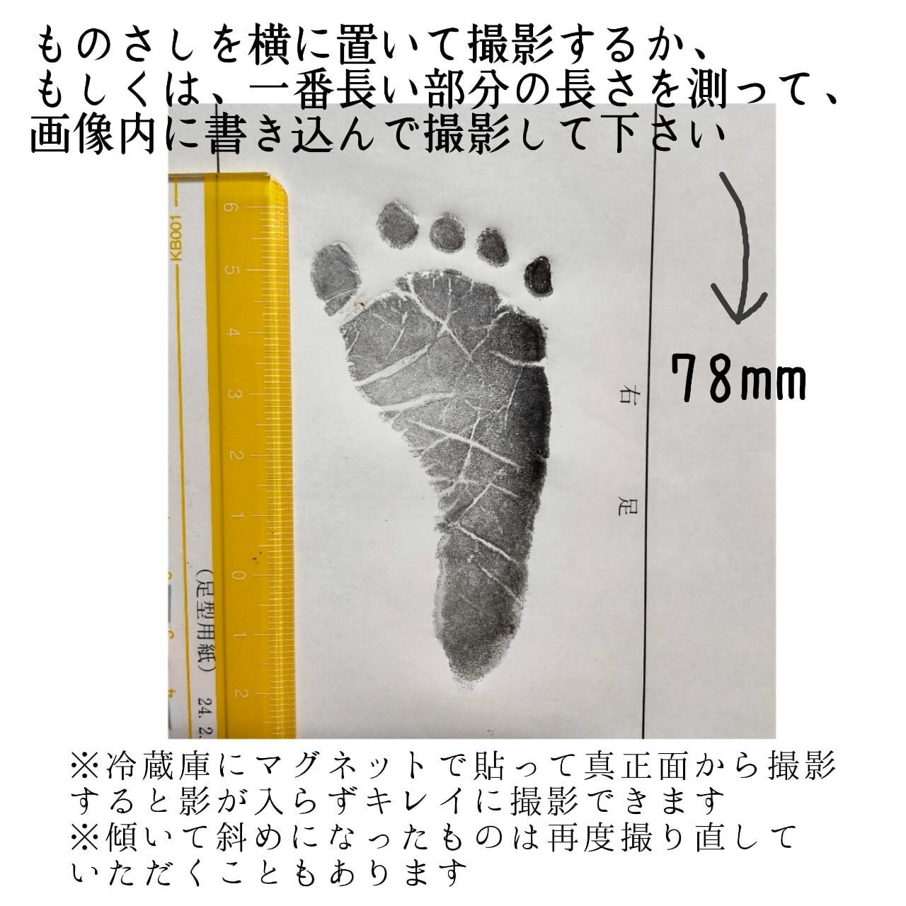 ものさしを横に置いて写真を撮って下さい(もしくは、一番長い部分の長さを測って記入してから撮影してください)